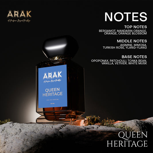 Introducing Queen Heritage, a mesmerizing perfume masterpiece crafted exclusively for discerning females by Arak Perfumes. Embrace the timeless essence of femininity and grace with this enchanting fragrance, designed to evoke a sense of heritage and sophistication.